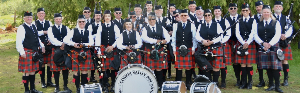 The Comox Valley Pipe Band is a community based organization dedicated to the preservation and enhancement of Scottish culture in the Comox Valley. Established as a registered non-profit society in 1985, the band regularly participates in a wide variety of parades, community events and Highland gatherings as well as providing individual piping and drumming services for special events. The Band is particularly proud of the large number of young students which have been introduced to piping and pipe band drumming through its' training programmes. Many of the current band personnel were trained from within the band organization.